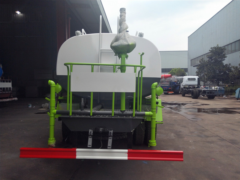 上裝配置:罐體采用國標(biāo)Q235碳鋼板材制作,罐體厚度4mm,前后封頭5MM加厚型,罐體實(shí)際容積9方(噸), 產(chǎn)品質(zhì)量成熟可靠,設(shè)計(jì)**合理,比同類灑水泵吸程遠(yuǎn)、壓力大、使用壽命長,可泵進(jìn)泵出。前沖、后灑、側(cè)噴, 消防栓接口,帶后工作平臺及綠化灑水高炮(可全方位旋轉(zhuǎn),可連續(xù)調(diào)成直沖狀、大雨、小雨、毛毛雨),水位計(jì), 兩根等長輸水管,其余標(biāo)配。 |