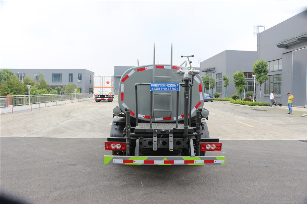 專用功能配置:罐體實(shí)際容積為5立方米,采用武鋼優(yōu)質(zhì)碳鋼板卷壓成型。配備專用灑水泵,自吸自排,前噴后灑、側(cè)噴、后工作平臺(tái)及灑水高壓炮。灑水泵自吸高度為6米左右,整車灑水寬度14米左右,后工作平臺(tái)水炮可調(diào)成:直沖狀、大雨、中雨、小雨、毛毛雨,有效射程≥28米,整車帶接頭、水位計(jì),自流閥及自吸功能。后工作平臺(tái)主管道帶1寸澆花接口,附送2根3米水管,1個(gè)爬梯,兩側(cè)及后保險(xiǎn)杠。