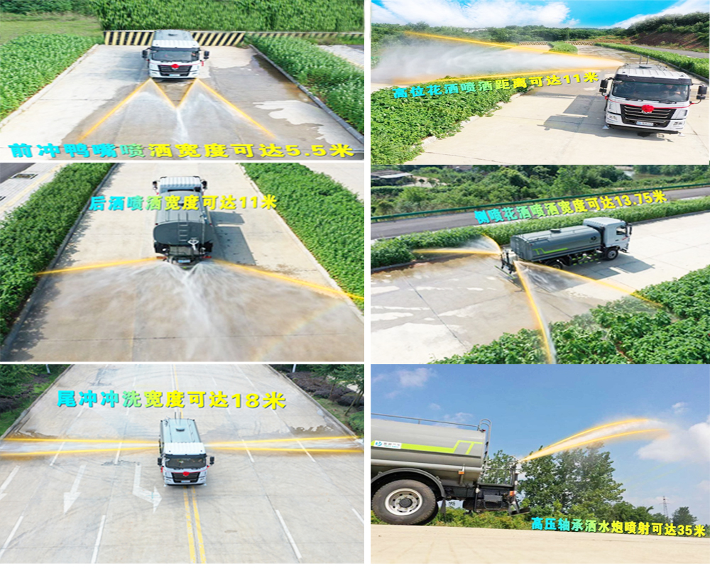 空調(diào)、電動(dòng)玻璃、中控鎖、氣囊座椅、行車(chē)記錄儀、轉(zhuǎn)向器及離合器液壓助力,氣壓制動(dòng),排氣制動(dòng)。專(zhuān)用功能配置:罐體實(shí)際容積約為17立方米,(罐體有效參數(shù)14立方米、額定載質(zhì)量10620kg、)采用武鋼優(yōu)質(zhì)碳鋼板卷壓成型。配備專(zhuān)用灑水泵,自吸自排,前噴后灑、側(cè)噴、后工作平臺(tái)及灑水高壓炮。灑水泵自吸高度為6米左右,整車(chē)灑水寬度14米左右,后工作平臺(tái)水炮可調(diào)成:直沖狀、大雨、中雨、小雨、毛毛雨,有效射程≥28米,整車(chē)帶接頭、水位計(jì),自流閥。后工作平臺(tái)主管路帶1寸澆花接口,附送2根3米水管,1個(gè)爬梯,兩側(cè)及后保險(xiǎn)杠。