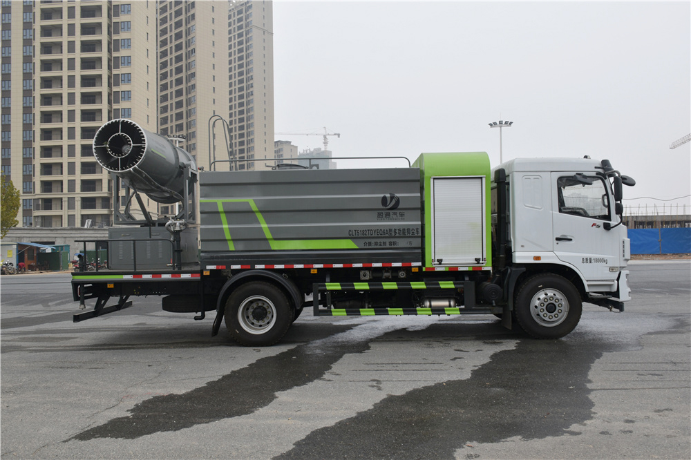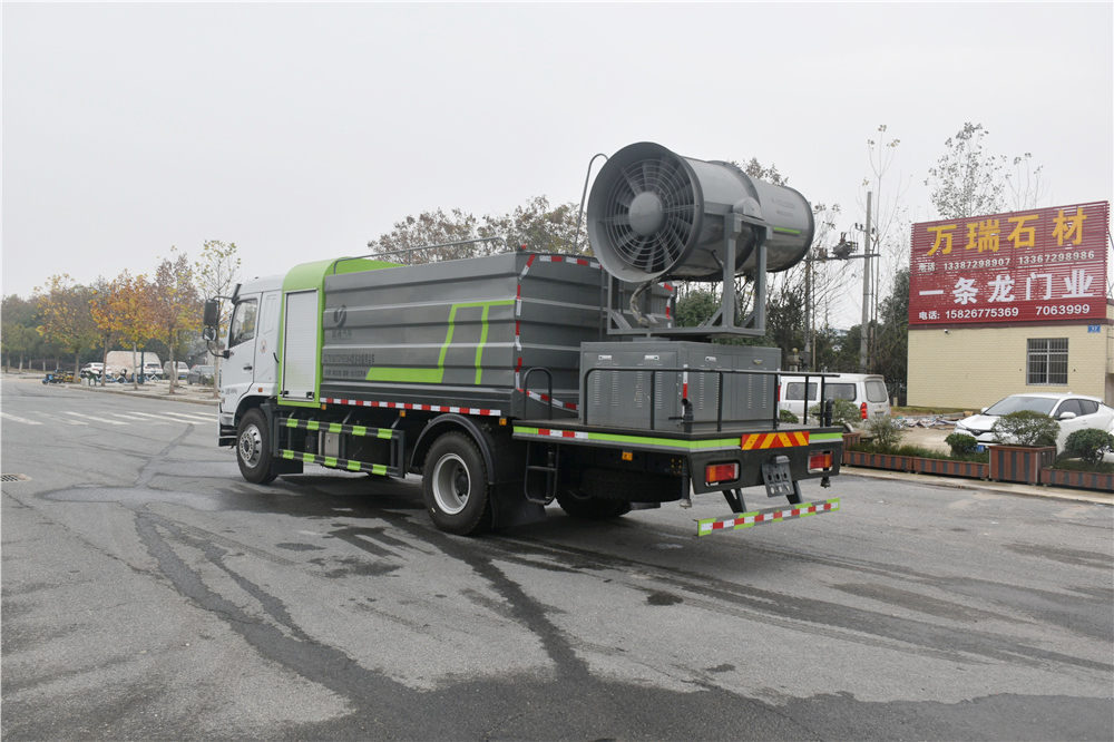 3、多功能抑塵車(chē)后工作平臺(tái)帶50米、60米、80米柴油霧炮機(jī)組; 用于噴霧拆遷降塵,農(nóng)藥噴灑作業(yè),防疫消毒多功能使用;