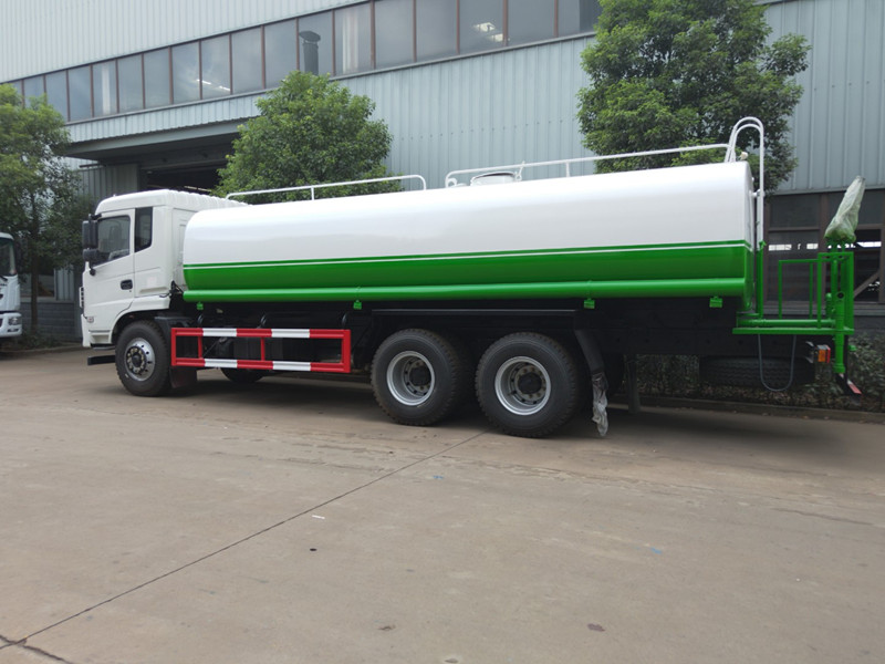 20噸灑水車,吸程≧7米,灑水寬度≧14-16米,射程≧25-30米,引水時(shí)間<5min,流量60m3/h。前沖(噴)、后灑、帶側(cè)噴(花灑)、帶后工作平臺(tái)、平臺(tái)上安裝綠化灑水高炮(炮噴射形狀可調(diào)節(jié):直沖、大雨、中雨、毛毛雨、霧狀、可連續(xù)調(diào)節(jié),360°旋轉(zhuǎn)),配消防接口,自流閥,濾網(wǎng),帶自吸自排功能。配備大功率專用灑水泵,泵可自吸自排,安裝過(guò)濾網(wǎng),帶消防接口,可通過(guò)消防栓進(jìn)水,帶自流閥,隨車選裝20米綠化卷盤,可噴灑農(nóng)藥,罐體金屬漆。罐體有橢圓和方圓罐兩種,可根據(jù)用戶的要求定做。