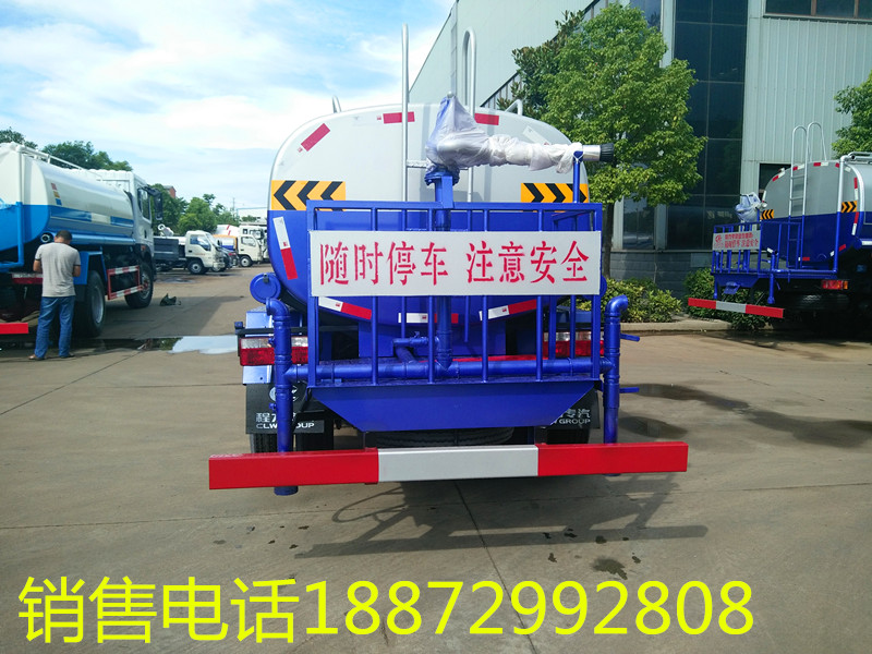 5噸灑水車,隨底盤選裝駕駛室前面罩以及前霧燈。2、灑水車罐體有效容積:4.06立方米,罐體外形尺寸(長×長軸×短軸關(guān)系為(mm): 3400×1600×1100, 吸程≧7米,灑水寬度≧14-16米,射程≧25-30米,引水時間<5min,流量60m3/h。前沖(噴)、后灑、帶側(cè)噴(花灑)、帶后工作平臺、平臺上安裝綠化灑水高炮(炮噴射形狀可調(diào)節(jié):直沖、大雨、中雨、毛毛雨、霧狀、可連續(xù)調(diào)節(jié),360°旋轉(zhuǎn)),配消防接口,自流閥,濾網(wǎng),帶自吸自排功能。配備大功率專用灑水泵,泵可自吸自排,安裝過濾網(wǎng),帶消防接口,可通過消防栓進(jìn)水,帶自流閥,隨車選裝20米綠化卷盤,可噴灑農(nóng)藥,罐體金屬漆。罐體有橢圓和方圓罐兩種,可根據(jù)用戶的要求定做 發(fā)動機(jī)可選,云內(nèi),朝柴 ,錫柴,全柴