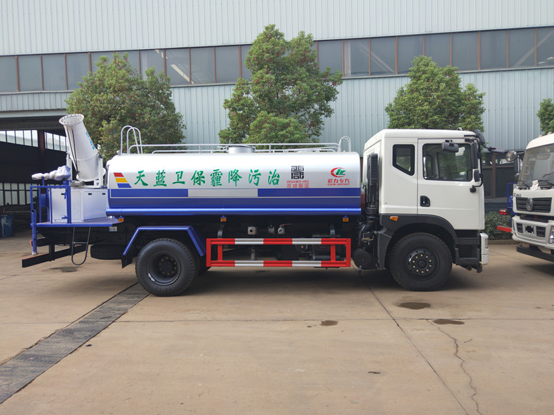 東風抑塵車上裝配置:配備大功率灑水泵,具有自吸自排功能,垂直吸程>6米。帶前部沖洗路面噴灑裝置、后部扇形降塵噴灑裝置,兩側面噴灑裝置,后部工作平臺、平臺上安裝綠化灑水炮(炮噴射形狀可調),可調直沖狀、大雨、中雨、毛毛雨,可連續(xù)調節(jié),自流閥及消防接頭各1個、水管3米2根。罐體內做環(huán)氧樹脂防腐處理。