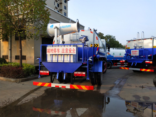 東風(fēng)D9多利卡抑塵車,帶自吸泵自吸自排,可將池塘的水直接吸入罐體內(nèi)也可直接從城市街道消防栓上連接注水,吸入罐體內(nèi)。罐前量水位管、罐后爬梯、罐上罐口帶簡易護欄、罐側(cè)雙炮筒、4寸鋼絲塑膠管兩根,罐體表面雙層油漆工藝,防銹、耐腐蝕?砂惭b50-80型柴油霧炮機組柴油電機組,發(fā)電機內(nèi)置安裝。