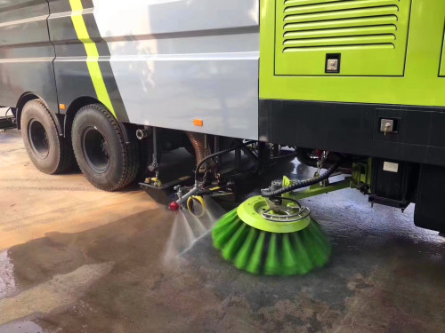 翻卸料的作業(yè)方式對(duì)路面進(jìn)行刷洗作業(yè)。