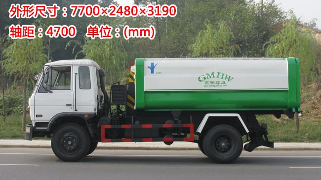 當軸距為4.5米時,可拉11~12方垃圾箱;軸距為4.7米時,可拉13~14方垃圾箱;軸距為5.1米時,可拉12~15方垃圾箱。勾臂為高強度一體式勾臂,國產(chǎn)液壓系統(tǒng),雙杠液壓支撐,帶鎖緊裝置,可加裝后液壓支腿。