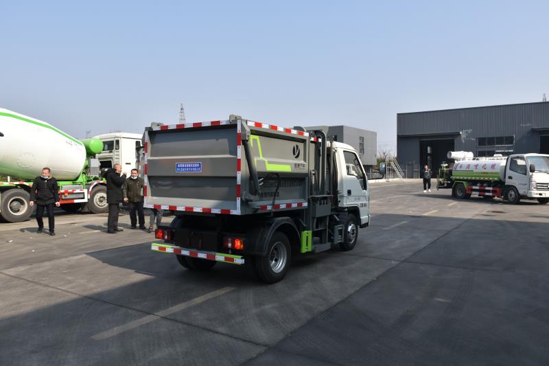 改裝容積3~4立方米,箱體采用Q235碳鋼,板材邊三底四,國內(nèi)知名油缸、多路閥,掛桶提升機構(gòu),外部操作,后蓋手動開啟。