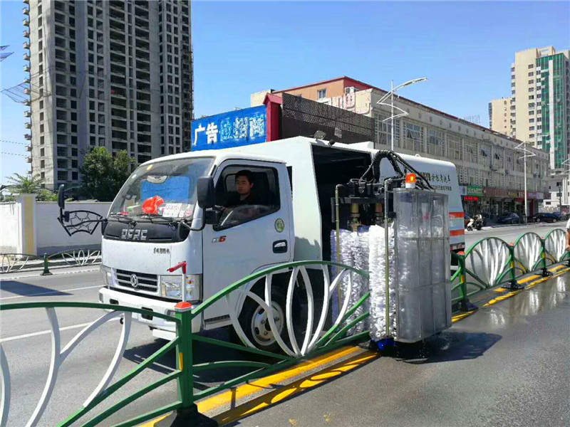 城市道路隔離護(hù)欄專用車:是采用毛刷擦洗和高壓水沖洗相結(jié)合的作業(yè)方式,進(jìn)行清洗城市道路隔離護(hù)欄的,中置四根高壓噴桿,噴出水壓高達(dá)24兆帕,能輕松解決護(hù)欄上面的粘浮垃圾及灰塵泥土,四根立式滾刷(尼農(nóng)條和粘連布組合材質(zhì))夾緊護(hù)欄高速轉(zhuǎn)動(dòng),將護(hù)欄上的頑固污漬、油漬輕松擦除,其中前置兩排高壓噴桿進(jìn)行第一次高壓沖洗,然后四根立式滾刷進(jìn)行兩次強(qiáng)力擦洗,最后后置兩根高壓噴桿進(jìn)行二次沖洗,清洗過(guò)后護(hù)欄潔凈如新。