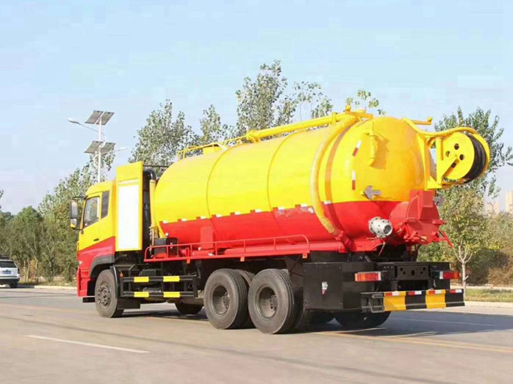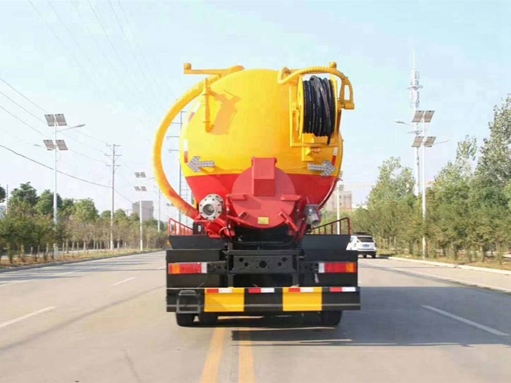 清洗裝置:配天津通潔300升高壓泵, 60米PVC雙層高壓管22通徑高壓管,10個(gè)高壓噴頭,兩個(gè)水泥蓋,頂部100的互通,水污互通用100的球閥,水罐3寸球閥安在罐體最底部.水倉(cāng)污倉(cāng)罐體內(nèi)噴防銹,后封頭600的液壓口,一個(gè)6寸自流,一個(gè)4寸的進(jìn)料口,一個(gè)4寸的排污口,側(cè)面一個(gè)6寸的球閥偷排。后蓋加裝活動(dòng)可拆式卷盤(pán)壹套,右后側(cè)一套卷盤(pán),罐體采用8個(gè)厚鋼板制作,后蓋上帶一個(gè)600液壓口排污,300側(cè)邊自流口。