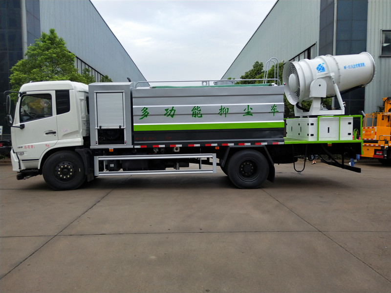 湖北運(yùn)隆生產(chǎn)的環(huán)保多功能抑塵車采用車底盤動(dòng)力通過液壓系統(tǒng)驅(qū)動(dòng)霧炮 ,實(shí)現(xiàn)了大范圍工作范圍無極調(diào)速控制,按照實(shí)際需求分配動(dòng)力,大幅降低能耗,減輕整車無效載荷,可旋轉(zhuǎn)360度,射程規(guī)格有20、30米、40米、50米、60米、70米、80米90米、100米、120米、150米等,普通灑水車只能對(duì)地面的浮塵進(jìn)行沖清,而這種新型環(huán)保多功能抑塵車具有強(qiáng)大灑水車的噴霧降塵功能,能360度全方位送風(fēng)霧化降塵,用于降低 PM10、PM2.5,被譽(yù)為“PM2.5治理神器”,通過把水轉(zhuǎn)化為水霧的形式,直接對(duì)大氣中的粉塵進(jìn)行抑制,這是一般灑水車無法做到的.