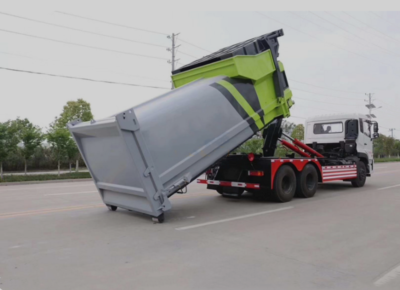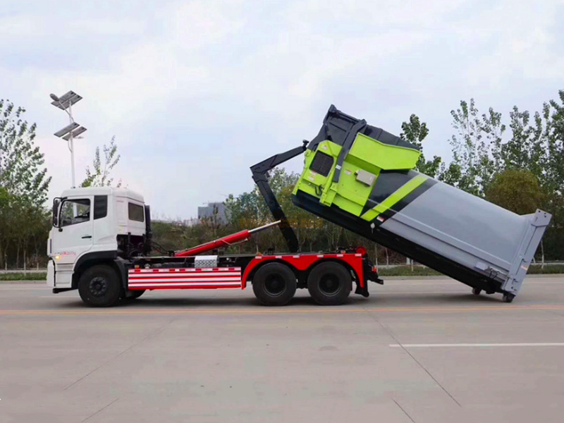 東風雙龍后雙橋勾臂垃圾車配18方移動壓縮垃圾箱,是我公司根據(jù)市場及客戶的需求開發(fā)的一種環(huán)衛(wèi)專用車輛,專門用于運轉(zhuǎn)鄉(xiāng)村城鎮(zhèn)中的生活垃圾。整車性能穩(wěn)定可靠,垃圾廂鉤裝、鉤卸操作安全省力,自卸垃圾輕便快捷,整車所配廂密封性好,完全符合城市環(huán)保要求。該車采用原裝底盤改裝,配置電控操作系統(tǒng)和手動操作桿兩種,通過液壓系統(tǒng)將垃圾廂勾起,卸下。上裝部分由缸、附車架、翻轉(zhuǎn)架、支撐腿(選裝)、鎖緊架、鎖緊油缸及多路換向閥等組成。一車可配備多個垃圾箱,實現(xiàn)與多個地點的垃圾斗聯(lián)合作業(yè);垃圾箱材質(zhì)分不銹鋼和碳鋼,外形為方形或圓弧形(一次冷壓成型),廂體為密封可壓縮式,兩側(cè)設計有垃圾裝入料口,后蓋為可向上打開的活動門,并用4個鎖栓鎖緊(防止 在垃圾運輸過程中垃圾廂內(nèi)的垃圾撒在路面上造成二次污染)開鎖緊栓可將廂內(nèi)垃圾一次性自卸出來,完全液壓操作,上下一次工作循環(huán)時間≤50秒。