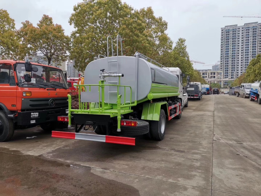 專用配置:罐體容積約12~14立方米,鋼板為4mm碳鋼Q235材質(zhì),前沖、后灑、側(cè)噴、后平臺帶綠化灑水炮,灑水炮可全方位旋轉(zhuǎn),可連續(xù)調(diào)成直沖狀、大雨、小雨、毛毛雨;前封頭帶水位計(jì),后平臺主管路帶1寸澆花接口,后爬梯,帶1個(gè)消防接頭,帶1個(gè)自流閥,1個(gè)過濾裝置。