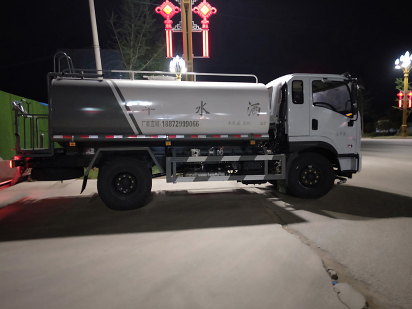 上裝配置:罐體采用優(yōu)質(zhì)碳鋼板制作,標(biāo)配,前沖(噴)后灑,帶側(cè)噴,罐體后帶工作平臺,平臺上安裝綠化灑水炮,灑水炮可***旋轉(zhuǎn),可連續(xù)調(diào)成直沖狀、大雨、小雨、毛毛雨,帶安全護(hù)欄,帶灑水泵,可自吸自排水(從池塘吸水,垂直吸深7米)。配兩個前沖灑水頭(灑水寬度14米),后面4個灑水噴頭(可向后面和側(cè)面灑水),后工作平臺及灑水高炮(高炮射程可達(dá)28米,可做應(yīng)及消防使用)。兩根吸水管(池塘吸水用),水位顯示計(jì),音樂喇叭。