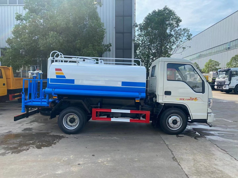 3噸灑水車具體配置:底盤部分,采用福田原廠灑水車底盤,全柴55匹馬力發(fā)動(dòng)機(jī),2600軸距,萬里揚(yáng)5檔變速箱,600-16輪胎,國三排放標(biāo)準(zhǔn),,專用部分,罐體采用優(yōu)質(zhì)碳鋼材質(zhì)制作,帶兩個(gè)前沖噴頭、兩個(gè)后灑噴頭、兩個(gè)側(cè)噴、后工作平臺(tái)、尾部安裝綠化炮,綠化炮可以自行調(diào)節(jié)(柱狀,大雨,中雨,小雨,霧狀),帶專用灑水泵可以實(shí)現(xiàn)自吸自排,帶消防接口,兩根輸水管,此車為出口車型