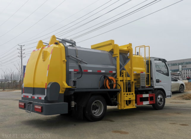 東風(fēng)小多利卡餐廚垃圾車改裝容積4~5m3,罐體厚度4.75mm,配備掛桶提升機(jī)構(gòu),后蓋液壓開(kāi)啟,罐體可以舉升自卸,尾部帶自流閥。