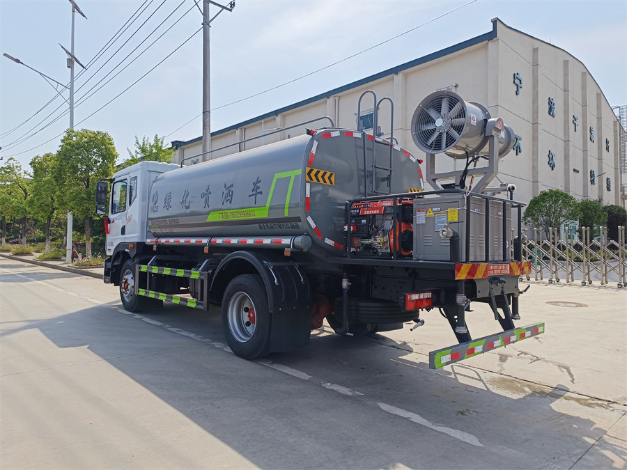 灑水車通常配備有前沖、后灑、前側(cè)噴(花灑)等裝置,這些裝置能夠有效地將水均勻地灑在路面上或綠化帶上。其中,前沖功能可以將路面的泥巴、塵土和垃圾沖干凈;后灑功能則可以均勻地將水灑在路面上,一次灑水寬度可達14米;前側(cè)噴(花灑)功能則適用于綠化帶的澆灌。灑水車還帶有后工作平臺,平臺上安裝有綠化灑水高炮,可以根據(jù)需要調(diào)節(jié)水流的狀態(tài),如大雨、中雨、毛毛雨或霧狀1。