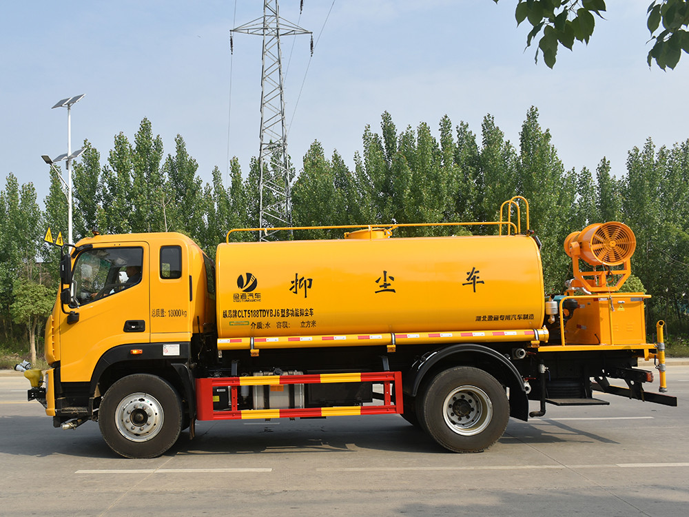 12 方奧鈴大黃蜂抑塵車,灑水車產(chǎn)品主要技術(shù)參數(shù) 序號 名稱 型號、規(guī)格 1 整車型號 CLT5188TDYBJ6 型多功能抑塵車 2 發(fā)動機型號 YCS04200-68 3 發(fā)動機馬力/功率 玉柴 200 馬力/147KW 4 發(fā)動機排量 4156ML 5 變速箱 法士特 8 檔(帶高低檔) 6 輪胎規(guī)格 10.00 鋼絲胎 7 軸距 3950 8 總質(zhì)量 18000KG 9 整備質(zhì)量 6800KG 10 額定載質(zhì)量 11005KG 11 整車尺寸(長×寬×高) 7.785*2.5*3.3 12 罐體容積 12 方 13 燃料種類 柴油 14 排放標準 國六 15 水泵型號 60/90 16 罐體材質(zhì) Q235 碳鋼產(chǎn)品功能展示 前沖鴨嘴 后灑 后對沖 高炮 高位花灑 側(cè)噴 霧炮