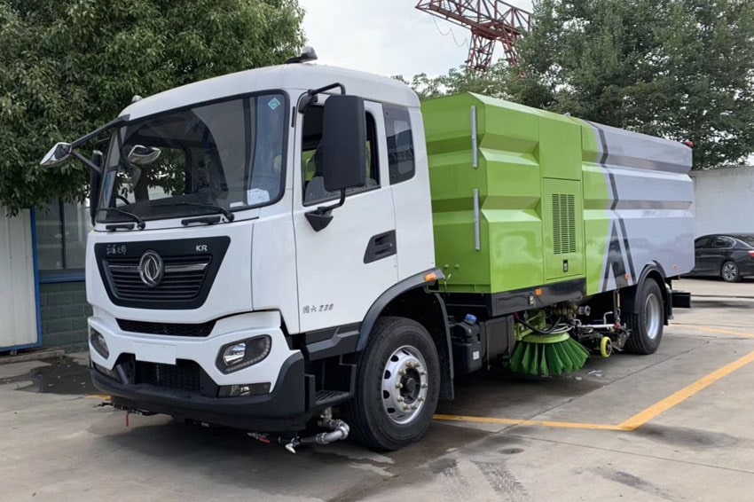 東風(fēng)天錦洗掃車具有路面清洗、路面清掃路緣和路緣石立面洗刷、低壓沖洗、噴霧 除塵等多功能。有“全洗掃”、 “左洗掃”、 “右洗掃”、 “全掃”、 多種作 業(yè)模式可選擇。選擇“全洗掃”模式清洗廣場(chǎng)和路面,清洗效率高效果好,洗 凈率達(dá) 95%以上。選擇“左洗掃”或“右洗掃”模式清洗路面和路緣 。需要進(jìn) 行路面清掃或路面保潔作業(yè)時(shí),可選擇掃路模式。需要噴霧除塵時(shí),可開啟噴霧裝置,進(jìn)行噴霧除塵作業(yè)?梢韵灑水車一樣對(duì)路面進(jìn)行低壓沖洗作業(yè)。
