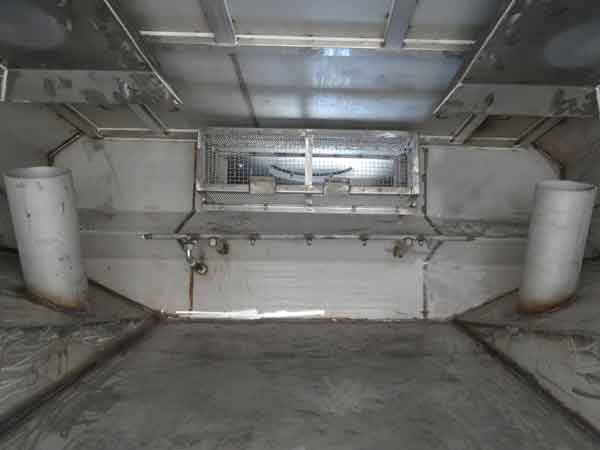 8)、污水箱內(nèi)采用大平面斜坡結(jié)構(gòu),最大卸料角度可達(dá)50度,更易于傾倒垃圾。污水箱內(nèi)設(shè)置了防溢滿報(bào)警裝置和高壓噴淋清洗裝置,防溢滿報(bào)警裝置可防止污水作業(yè)時(shí)從吸管溢出,造成二次污染;高壓噴淋清洗裝置在傾倒垃圾后可對(duì)污水箱進(jìn)行自動(dòng)清洗,大大減輕了操作人員的勞動(dòng)強(qiáng)度