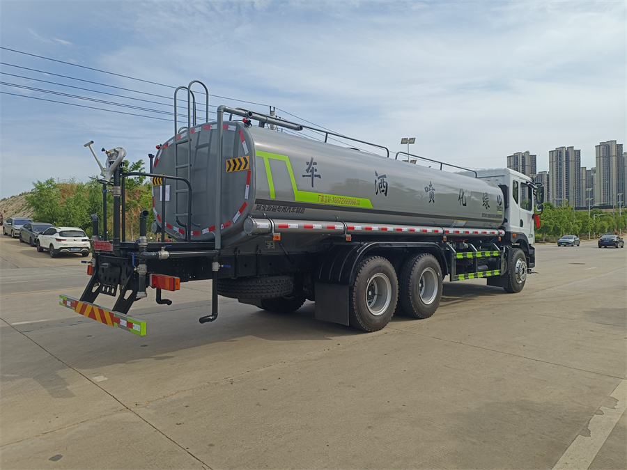 東風(fēng)20噸灑水車產(chǎn)品標(biāo)配前噴(鴨嘴)、后沖、后灑、側(cè)噴、后置式工作 平臺(tái),平臺(tái)上配置綠化水炮(可 360°旋轉(zhuǎn),既可以調(diào)成柱狀,也可 以調(diào)成霧狀,更可以調(diào)成直沖狀、大雨、中雨、小雨、毛毛雨),配 備優(yōu)質(zhì)大功率專用灑水泵(可自吸自排,可從河里或池塘抽水到罐體), 取力器,雜物過濾網(wǎng),消防接口,自流球閥系統(tǒng)、取力器、球閥、濾網(wǎng) 均為國家標(biāo)準(zhǔn)產(chǎn)品,主管道加粗,法蘭墊、法蘭盤加厚,大通徑球閥。 整體具備性能優(yōu)良安全可靠、效率高、流量大、維修方便等特點(diǎn)IMG20240603160859_副本.jpg