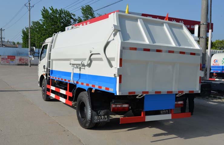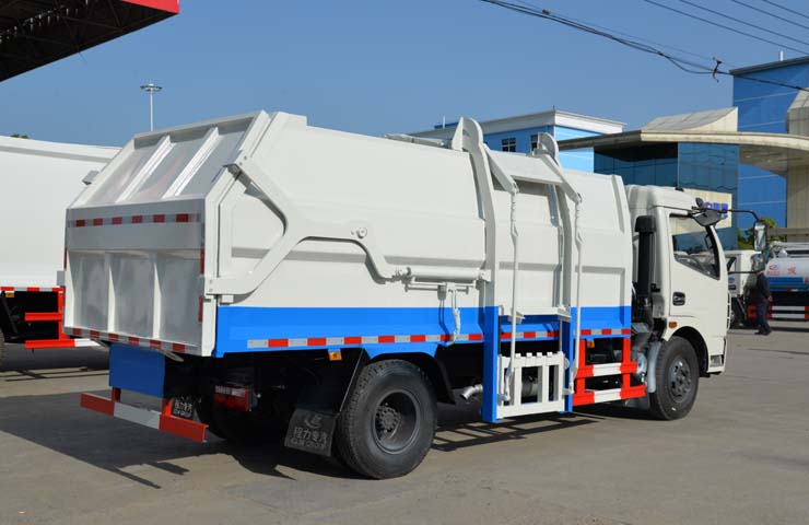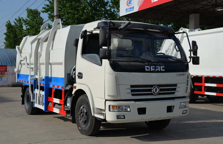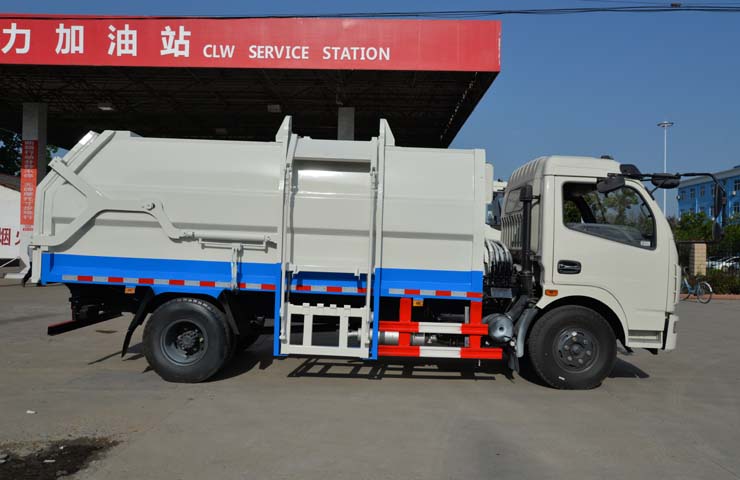 容積6~8立方米,箱體采用Q235碳鋼材質(zhì),箱體右側(cè)配液壓掛桶提升機,可掛國標120升+240升塑料垃圾桶,駕駛室外部手動操作,鐵通掛架;后門鎖緊為機械鎖緊,手動開啟;相同結(jié)構(gòu)為槍版形式。