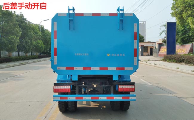 容積3~4立方米,標配全國知名油缸,淮安多路閥,駕駛室外部手動操作,鐵通掛架;后門鎖緊為機械鎖緊,手動開啟;相同結(jié)構(gòu)為槍版形式,碳鋼材料,箱體邊三底四。雙頂自卸,可裝240升拉圾桶50個,環(huán)保齊全,不超重,好上戶。