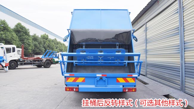 新款無(wú)筋條箱體,平面圓弧美觀大方,有效壓縮容積8立方,尾部帶翻轉(zhuǎn)上料機(jī)構(gòu),電控手動(dòng)雙操控器,駕駛室與車(chē)尾部雙控制箱,尾部帶3厘米厚橡膠密封壓條,帶污水收集槽,大容量污水箱。箱體可按要求噴繪圖案和字樣。