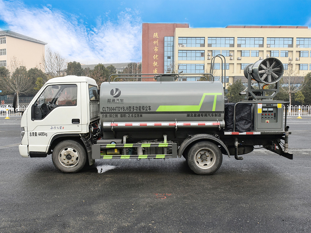 縱昂牌 CLT5044TDYBJ6A 型多功能抑塵車標(biāo)配后對沖、后灑、側(cè) 噴、后置式工作平臺,平臺上配置綠化水炮可 360°旋轉(zhuǎn),既可以調(diào)成柱狀, 也可以調(diào)成霧狀),配備優(yōu)質(zhì)大功率專用灑水泵,可自吸自排,可從河里或池 塘抽水到罐體,取力器,雜物過濾網(wǎng),消防接口,自流球閥系統(tǒng)、取力器、球 閥、濾網(wǎng)均為國家標(biāo)準(zhǔn)產(chǎn)品,主管道加粗,法蘭墊、法蘭盤加厚,大通徑球閥。 整體具備性能優(yōu)良安全可靠、效率高、流量大、維修方便等特點(diǎn)。