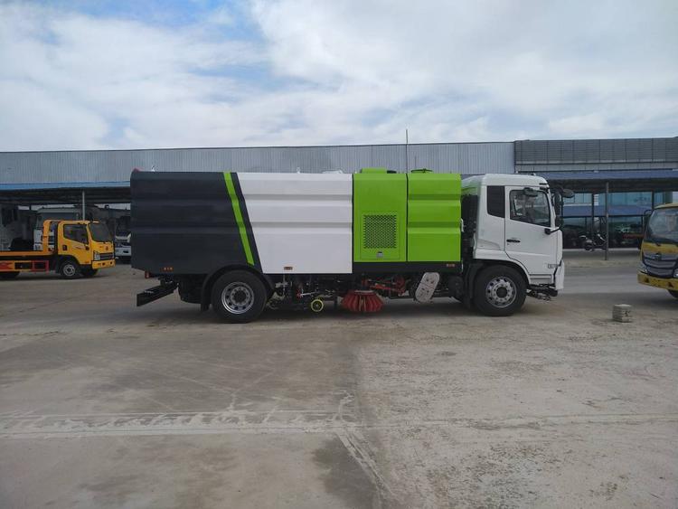 國六東風(fēng)天錦洗掃車 箱體容積9立方水7立方塵.中置2掃盤、康明斯170馬力副發(fā)動機(jī)(多利卡為140馬力康明斯副發(fā)動機(jī)),德國品孚高壓水泵(前沖側(cè)噴中噴后噴霧側(cè)沖洗車水槍垃圾箱自潔裝置)、高壓路沿清洗噴頭,威龍低壓泵,(前沖)不銹鋼垃圾箱、不銹鋼高壓管路,德國控制器西門子電器原件、水箱均帶防溢或低水位報(bào)警裝置;倒車及洗掃狀態(tài)室內(nèi)監(jiān)視器、18m高壓沖洗卷盤、清掃寬度3.5m;清洗壓力10Mpa,吸入顆粒度120mm.