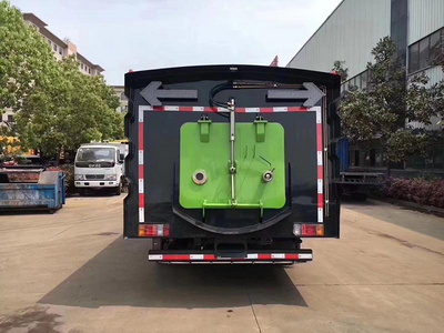 7、垃圾箱采用雙層內膽不銹鋼結構,內部加裝過濾網板,能有效地防止樹葉、塑料袋之類的輕飄物堵塞風口及灰塵的排出。內置污水報警系統(tǒng),通過后門處污水閥方便的將污水排至下水道,最大限度的利用了垃圾箱裝載垃圾的空間。廂體采用傾翻卸料,帶高壓沖洗自潔裝置。