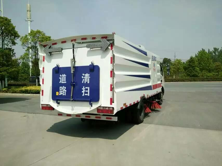 該掃路車采用東風(fēng)多利卡型國五二類底盤改裝,加裝副發(fā)動機、風(fēng)機、清水箱、垃圾箱、左右立掃、后置吸盤,掃盤降塵系統(tǒng),液壓系統(tǒng)、專用裝置電控系統(tǒng)和副車架等改裝而成(可加裝前沖后灑)