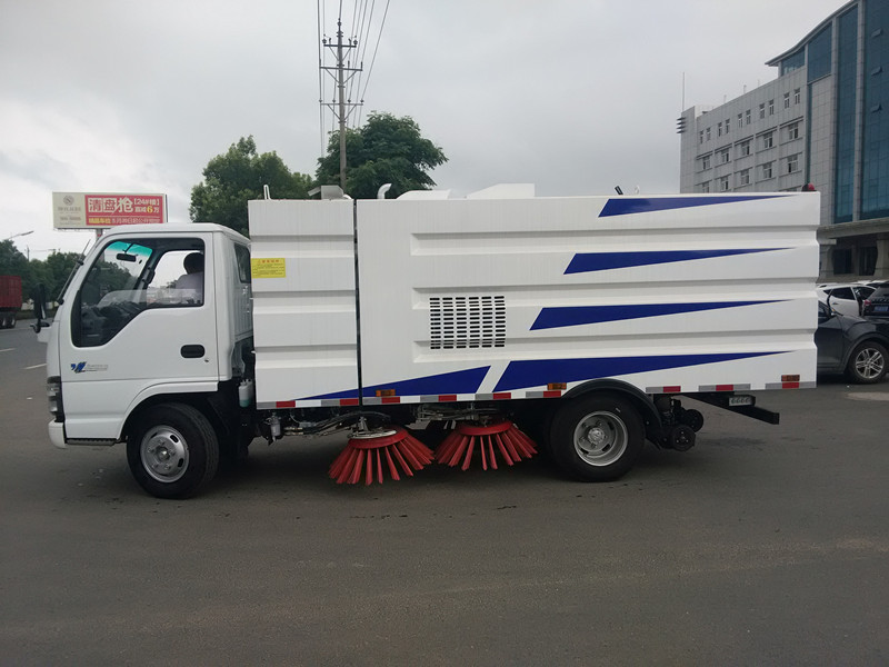 該掃路車采用重慶五十鈴型國五二類底盤改裝,加裝副發(fā)動機、風(fēng)機、清水箱、垃圾箱、左右立掃、后置吸盤,掃盤降塵系統(tǒng),液壓系統(tǒng)、專用裝置電控系統(tǒng)和副車架等改裝而成。