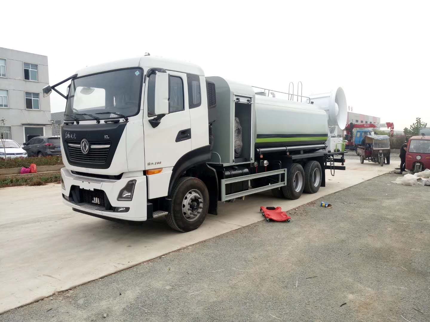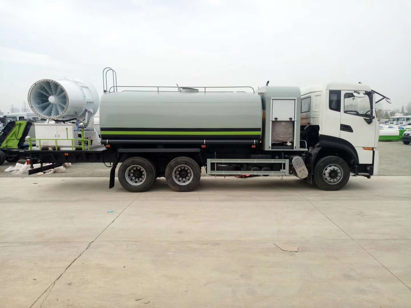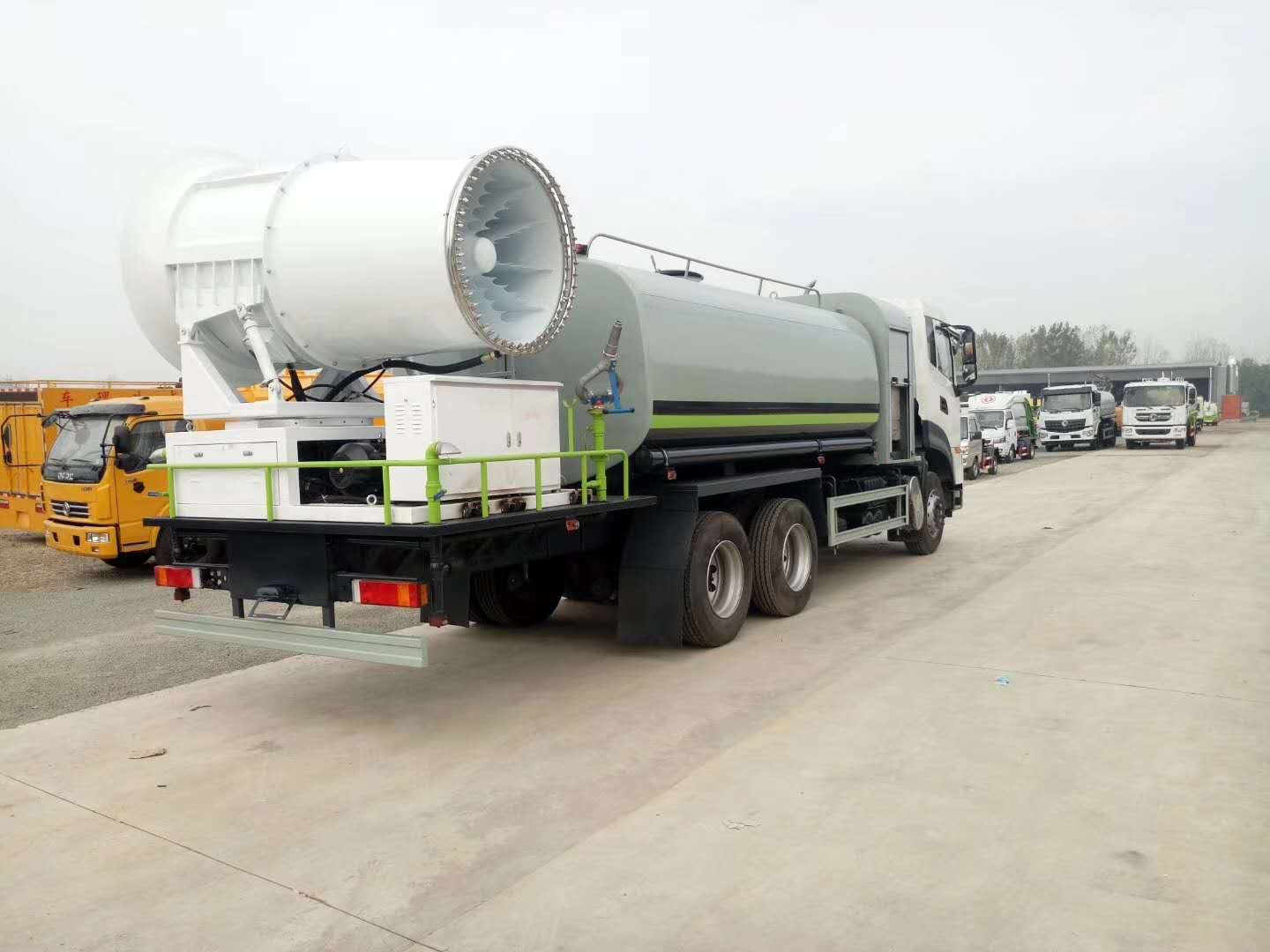 整車說明:專用裝置為抑塵霧炮,用于城市抑塵.防護(hù)材料:Q235A碳鋼,連接方式:左右側(cè)面及后部防護(hù)均采用焊接連接,后部防護(hù)斷面尺寸(mm):150×50,后部防護(hù)離地高度(mm):500.ABS型號(hào)/生產(chǎn)廠家:3631010-C2000/東科克諾爾商用車制動(dòng)系統(tǒng)(十堰)有限公司,ABS 8/東科克諾爾商用車制動(dòng)系統(tǒng)(十堰)有限公司,4460046450/威伯科汽車控制系統(tǒng)()有限公司.隨底盤選裝駕駛室.