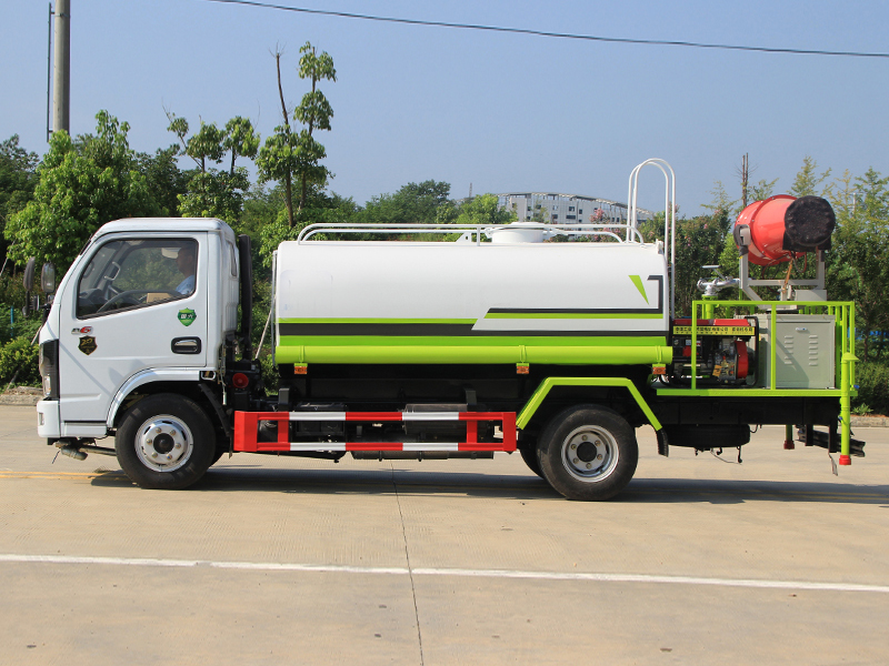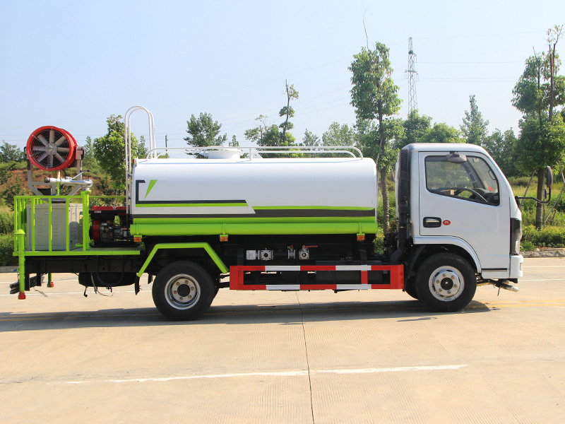 上裝配置:罐體容積5立方,前(噴)后灑,帶側(cè)噴,罐體后帶工作平臺(tái),平臺(tái)上安裝綠化灑水炮,灑水炮可全方位旋轉(zhuǎn),可連續(xù)調(diào)成直沖狀、大雨、小雨、毛毛雨,帶安全護(hù)欄,配大功率專(zhuān)用灑水泵,泵可自吸自排,安裝過(guò)濾網(wǎng),帶消防接口,可通過(guò)消防栓進(jìn)水,帶自流閥。選裝30-50米射程霧炮。