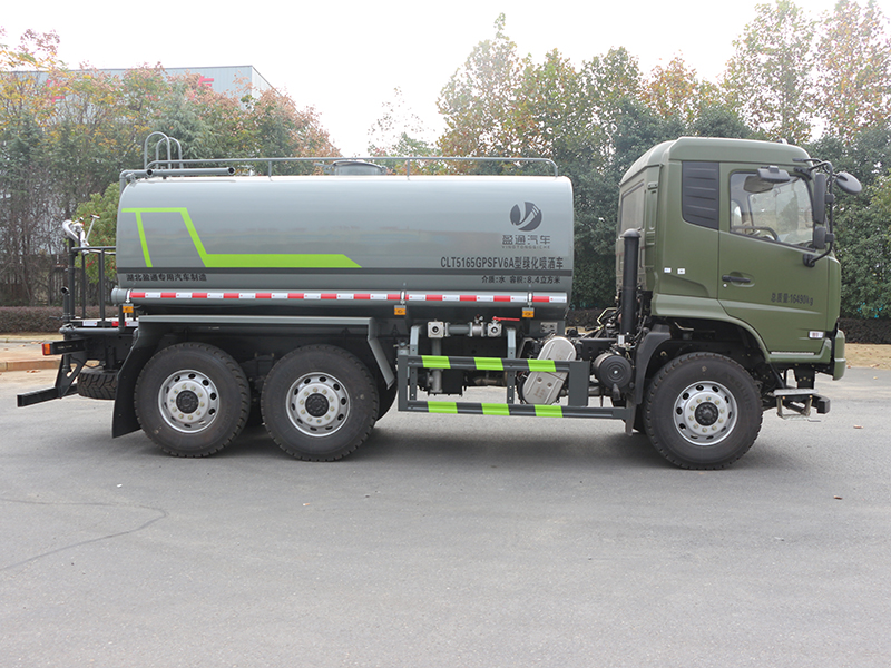 標(biāo)準(zhǔn)配置灑水車(chē)主要裝備有:前沖(沖洗公路路面)、后灑(公路路面養(yǎng)護(hù))、側(cè)噴、高位側(cè)花灑(路邊綠化帶優(yōu)化);后工作平臺(tái)高壓水炮,可調(diào)節(jié)成柱狀,射程≥28m;也可調(diào)節(jié)成霧狀,射程≥30米,水泵自吸高度:≤7m,灑水寬度:≥15m。側(cè)防護(hù)網(wǎng),自流閥,消防接頭。灑水車(chē)水泵為常壓水泵,功能可以抽水、排水。另外根據(jù)用戶要求,可加消防泵、噴霧機(jī)、農(nóng)藥卷盤(pán)、農(nóng)藥柱塞泵。罐內(nèi)可以做防腐防銹、電磁閥氣動(dòng)閥自動(dòng)放水等****,以滿足不同用戶需求。