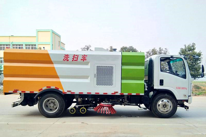 10、陜汽5噸洗掃車的左后方配有20米高壓沖洗卷盤,可用來沖洗車身,也可用于清洗廠房、幕墻等。