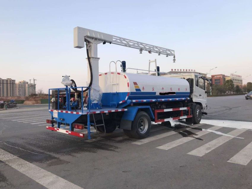 抑塵車上裝配置:罐體為4.5方方形罐,前沖、后灑、側(cè)噴、高炮,抑塵噴灑桿(帶旋轉(zhuǎn)伸縮功能)。噴灑桿離地3.5-4.5米 ,后部平臺帶8KW副發(fā)電機(jī)組,罐體內(nèi)部加兩個1.5KW電動馬達(dá)(帶攪拌功能)罐體噴漆上白下藍(lán),平臺和噴灑桿藍(lán)色。遙控操作噴灑桿上下左右旋轉(zhuǎn),電控箱安裝在后部平臺。