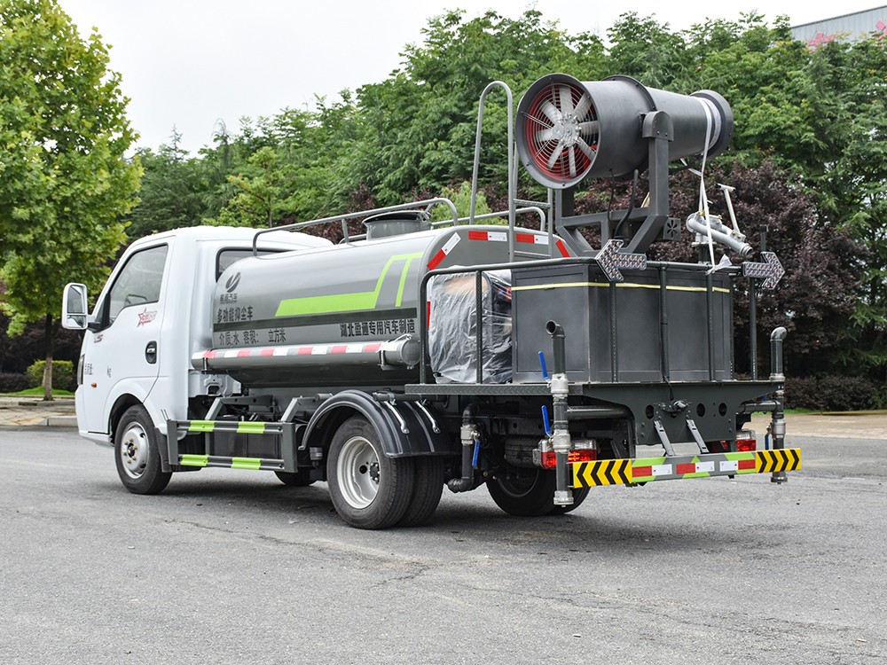 東風途逸 2.5 方抑塵車主要技術參數(shù) 序號 名稱 型號、規(guī)格 1 整車型號 CLT5040TDYEQ6 型多功能抑塵車 2 發(fā)動機型號 Q23-95E60 3 發(fā)動機馬力/功率 全柴 95 馬力/70KW 4 發(fā)動機排量 2300ML 5 變速箱 萬里揚 5 檔 6 輪胎規(guī)格 185 真空胎 7 軸距 2800 8 總質(zhì)量 4495KG 9 整備質(zhì)量 2880KG 10 額定載質(zhì)量 1485KG 11 整車尺寸(長×寬×高) 5.8*1.85*2.6 12 罐體容積 2.5 方 13 燃料種類 柴油 14 排放標準 國六 15 水泵型號 40/50 16 罐體材質(zhì) Q235 碳鋼四. 產(chǎn)品功能展示 霧炮 后灑 后對沖 高炮 側噴