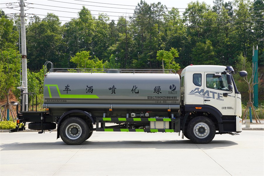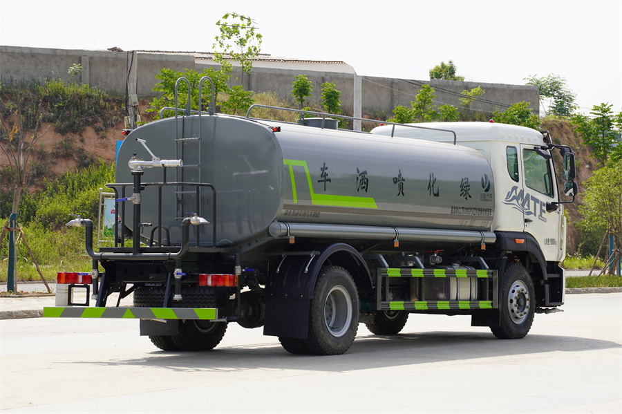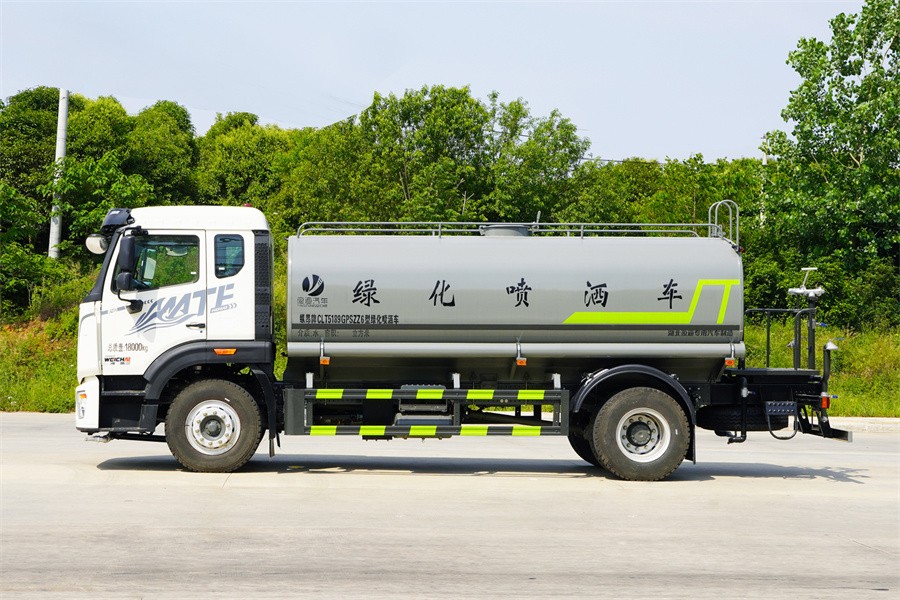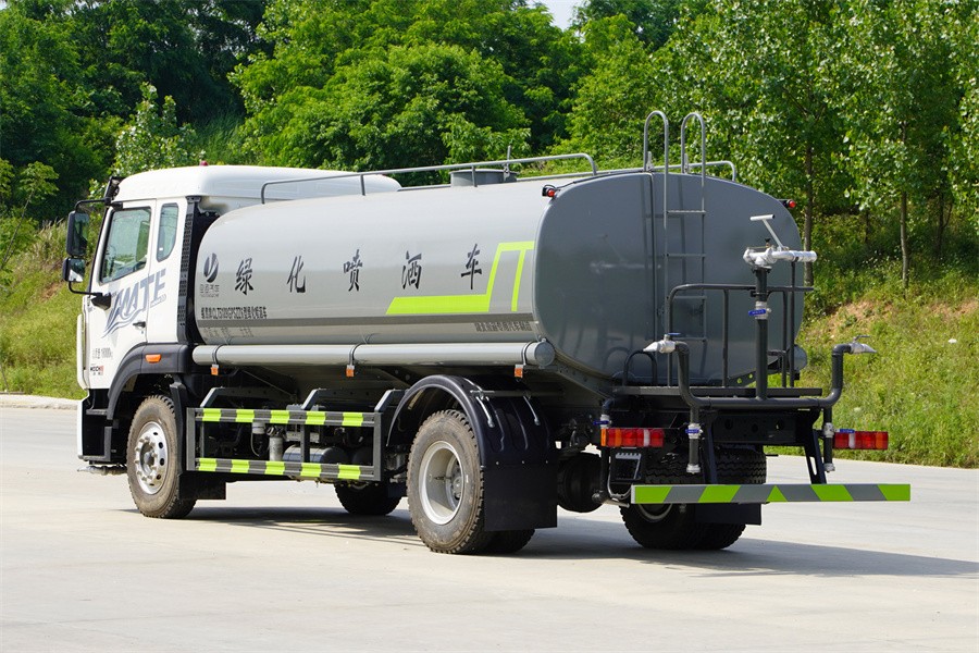 重汽15噸灑水車產(chǎn)品標(biāo)配前噴(鴨嘴)、后沖、后灑、側(cè)噴、后置式工作 平臺(tái),平臺(tái)上配置綠化水炮(可 360°旋轉(zhuǎn),既可以調(diào)成柱狀,也可 以調(diào)成霧狀,更可以調(diào)成直沖狀、大雨、中雨、小雨、毛毛雨),配 備優(yōu)質(zhì)大功率專用灑水泵(可自吸自排,可從河里或池塘抽水到罐體), 取力器,雜物過濾網(wǎng),消防接口,自流球閥系統(tǒng)、取力器、球閥、濾網(wǎng) 均為國(guó)家標(biāo)準(zhǔn)產(chǎn)品,主管道加粗,法蘭墊、法蘭盤加厚,大通徑球閥。 整體具備性能優(yōu)良安全可靠、效率高、流量大、維修方便等特點(diǎn)