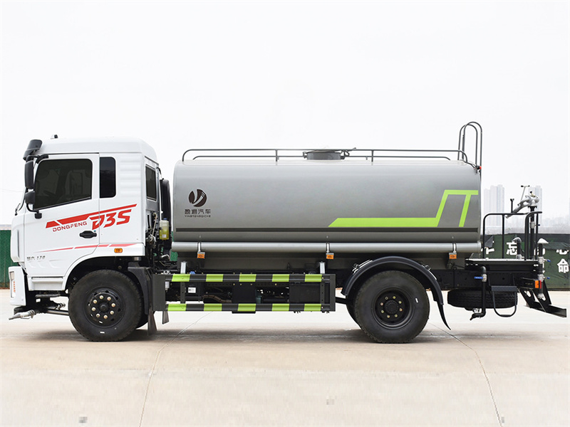 東風12噸灑水車產品標配前噴(鴨嘴)、后沖、后灑、側噴、后置式工作 平臺,平臺上配置綠化水炮(可 360°旋轉,既可以調成柱狀,也可 以調成霧狀,更可以調成直沖狀、大雨、中雨、小雨、毛毛雨),配 備優(yōu)質大功率專用灑水泵(可自吸自排,可從河里或池塘抽水到罐體), 取力器,雜物過濾網(wǎng),消防接口,自流球閥系統(tǒng)、取力器、球閥、濾網(wǎng) 均為國家標準產品,主管道加粗,法蘭墊、法蘭盤加厚,大通徑球閥。 整體具備性能優(yōu)良安全可靠、效率高、流量大、維修方便等特點。