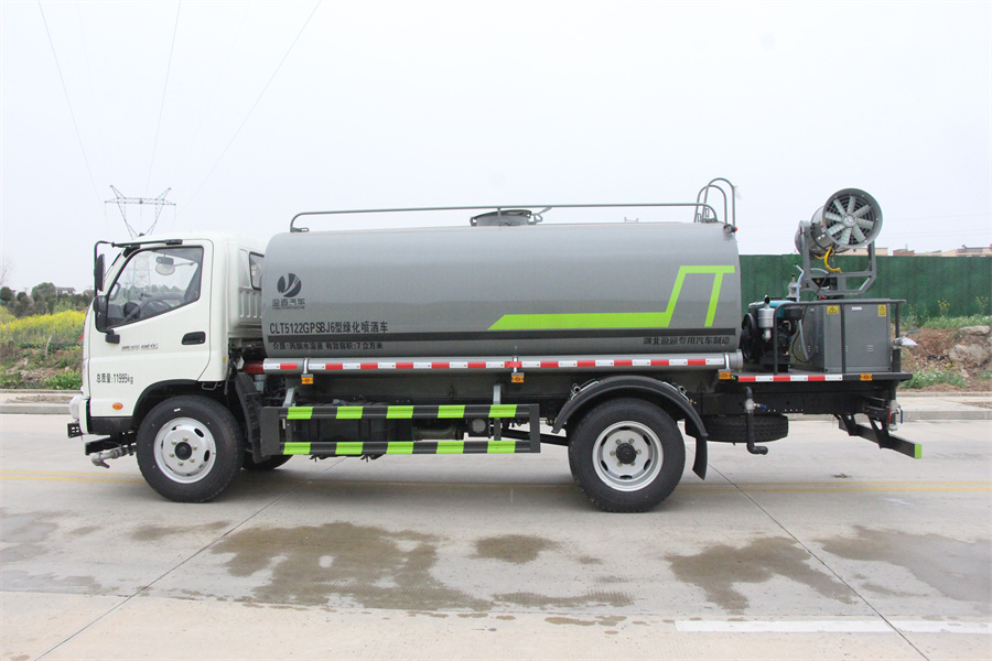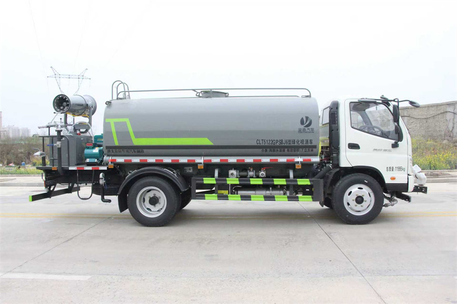 產品簡述:縱昂牌 CLT5122GPSBJ6 型綠化噴灑車標配前噴(鴨嘴)、后對 沖、后灑、側噴、后置式工作平臺,平臺上配置綠化水炮(可 360°旋轉,既可 以調成柱狀,也可以調成霧狀),配備優(yōu)質大功率專用灑水泵(可自吸自排, 可從河里或池塘抽水到罐體),取力器,雜物過濾網(wǎng),消防接口,自流球閥系統(tǒng)、 取力器、球閥、濾網(wǎng)均為國家標準產品,主管道加粗,法蘭墊、法蘭盤加厚, 大通徑球閥。整體具備性能優(yōu)良安全可靠、效率高、流量大、維修方便等特點。