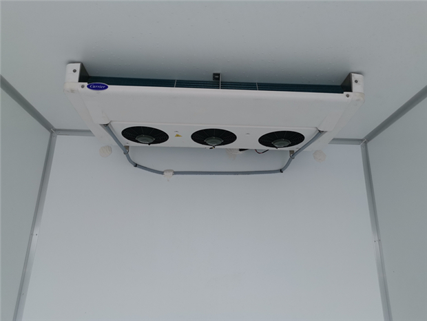 車廂配置為:《斷橋隔溫工藝、整體結(jié)構(gòu)框架》;內(nèi)外面料為3mm新款玻璃鋼;側(cè)板+頂板:全密封雙組合聚氨酯膠粘連;廂體厚度為8cm;頂板10cm厚,底板12cm厚,最新款鋁合金包邊型材;型材局部厚度為4mm(鋼制鉚釘加固);廂體內(nèi)部采用2個LED照明燈及廂體示寬燈;后門框為3mm厚不銹鋼材質(zhì);門框密封條為三元乙丙橡膠材質(zhì);加厚型不銹鋼合頁及鎖件;副梁為Q700車用大梁鋼;15mm厚大梁墊皮;加裝防撞膠塊;不銹鋼門鎖件,配后雙開門。底板為加厚鋁合金通風(fēng)槽滿焊,帶30cm高新型圍裙,副駕駛一側(cè)居中靠前開單側(cè)門,鋁合金側(cè)防護,不銹鋼冷機維護爬梯,帶大工具箱一個。帶剎車淋水器,前后淋水分別控制。